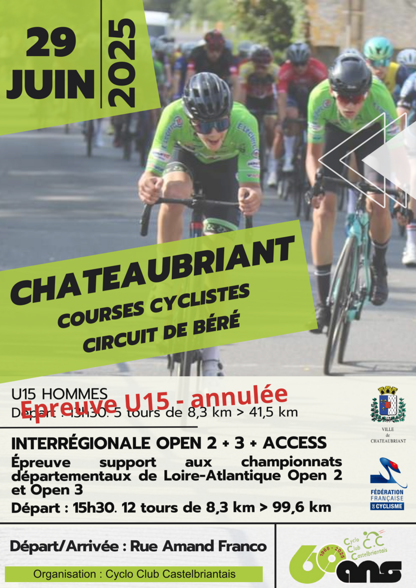 L'épreuve Open 2-3-Access est maintenue avec un départ à 15h30 et un beau peloton de 97 coureurs. Cette épreuve sera support aux championnats départementaux Open 2 et Open 3.