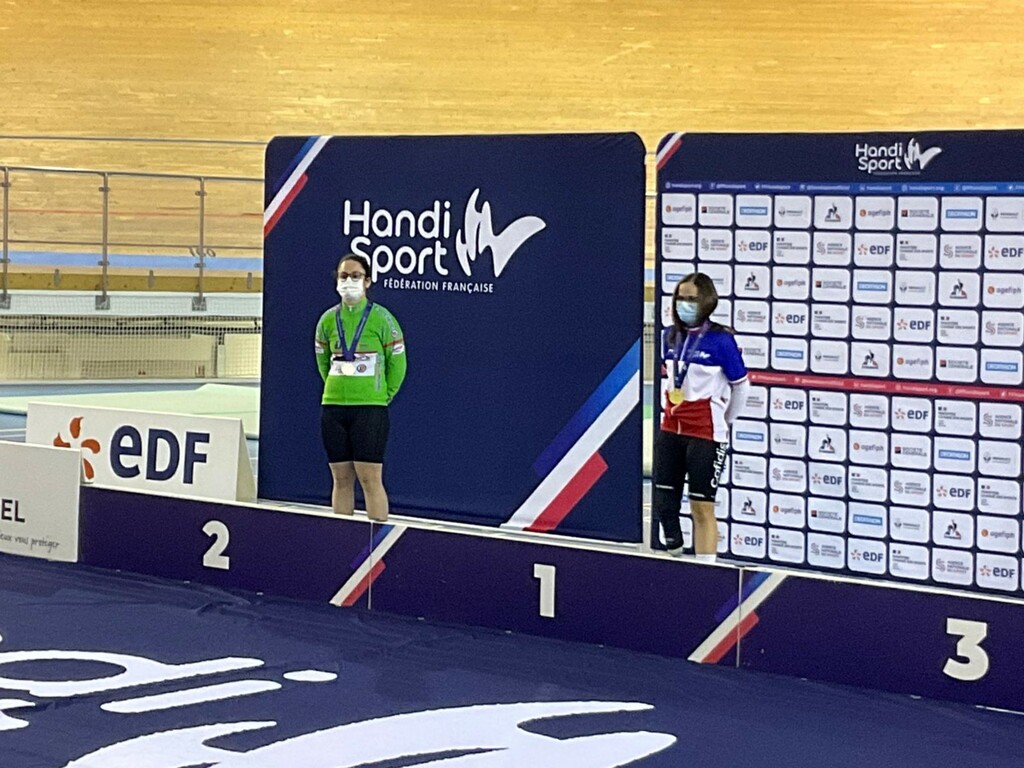 Marion disputait les France sur piste en paracyclisme. Elle prend la 2ème place de la poursuite et de l'omnium derrière Katell Alençon.