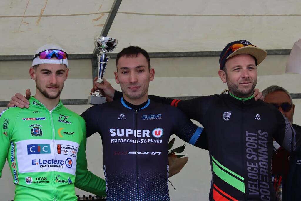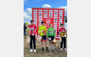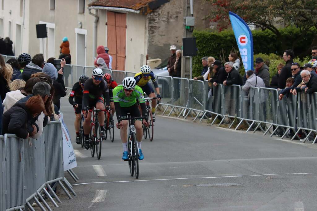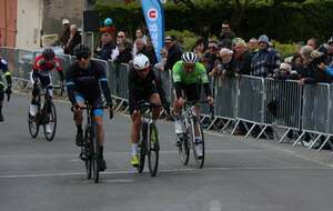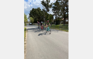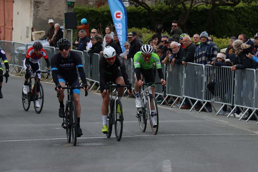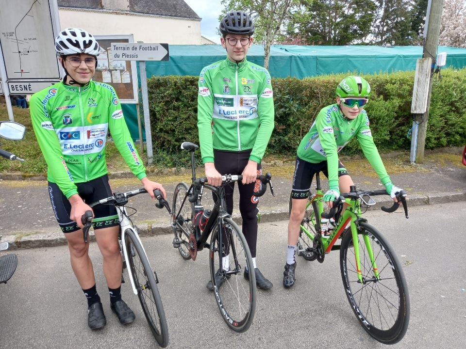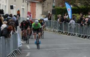 En cadets récit de Jérôme Pinard: Nos 3 cadets ont toujours été dans le groupe de tête sur un circuit sélectif avec quelques petites patates à parcourir 16 fois. Ils n'ont pas réussi à s'extraire du peloton. C'est un groupe d'une vingtaine d'unités qui se disputera la victoire au sprint. Louis prend la 6ème place, Mathéo P 13ème et Baptiste 14ème. 44 coureurs étaient au départ."