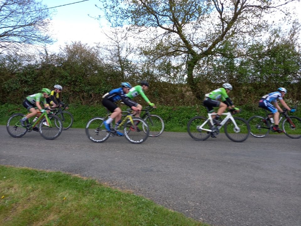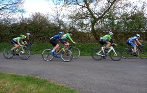 Départ des pass, dès la fin du 2ème tour Daniel essaie de s'échapper en duo ils comptent une quinzaine de secondes d'avance, au tour suivant Daniel est toujours là en solo avec quelques mètres d'avance sur le peloton. 6 coureurs le rejoignent et là une épreuve de force avec un contre et le peloton se met en place. Pendant plusieurs tours l'avance sur le peloton n'excédera pas 30", malgré les verts qui contrôlent le paquet, et le contre pointé à 15". Enfin le contre rentre 10 hommes à l'avant et là l'écart commence à se creuser avec le peloton jusqu'à compter 1'30" d'avance. L'affaire est entendu. L'écart commence à décroître mais reste suffisant. Sébastien essaie de s'extirper du peloton à 2 tours de la fin mais n'y arrive pas. Personne n'arrivera à s'extirper de l'échappée et c'est un groupe de 10 unités qui se dispute la victoire. Daniel prend la 3ème place au sprint. Derrière un groupe de 2 hommes longtemps en chasse patate fait la jonction inextremis avec l'échappée dans les derniers hectomètres. Le pelton arrive une vingtaine de secondes plus tard. Arthur le règle en patron et prend la 13ème place. Derrière Florian et Sébastien finissent dans le peloton.