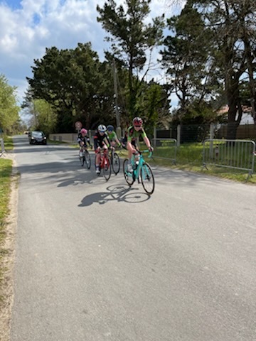 Honneur aux dames. Ines, Maëva, Morgane et Romane disputaient l'épreuve de St Jean de Monts. Delphine, envoyé spéciale sur place explique la course: "Léa, Flavie et Maëva avaient décidé de faire tout exploser dès le départ. Au 1er tour elles passent à 5 concurrentes en tête dont Maëva et Morgane. Hélas cette accélération a fait sauté Ines du peloton. Au tour d'après Morgane n'était plus dans l'échappée. Maëva finit 4ème, l'épreuve est remportée par Flavie. Derrière Ines et Morgane finissent la course à la 14 et 16ème place." Une épreuve PC était organisée le matin Alexandre finit 21ème et Jérôme pour qui c'était dur avec les D1, D2 finit la course.