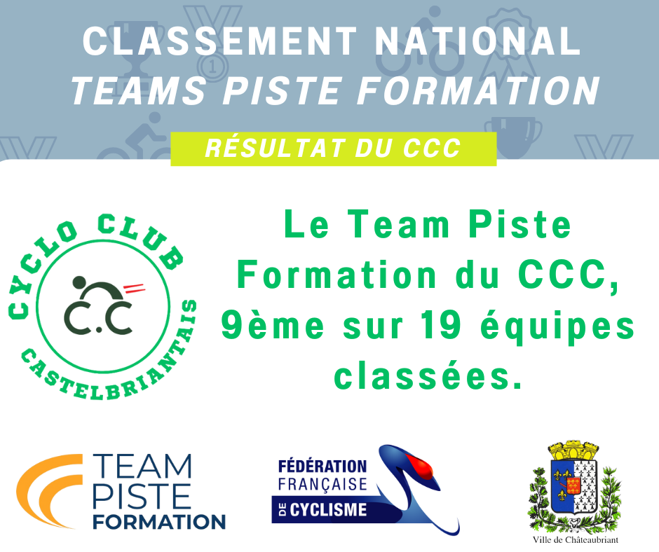 Désireux de redonner à la Piste ses lettres de noblesse et de soutenir cette belle discipline sur le sol de la Loire-Atlantique et des Pays-de-la-Loire, le CCC avait candidaté pour l'obtention du label Team Piste Formation en novembre 2023. La FFC, avec le soutien préalable du Comité Régional des Pays-de-la-Loire, nous a délivré ce label en février 2024.