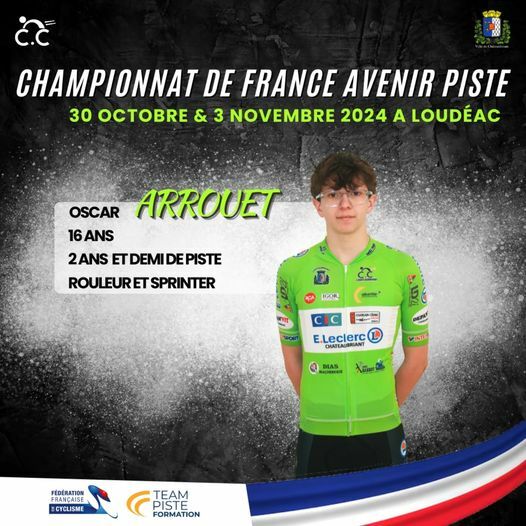 Oscar va défendre les couleurs de la région du 31 octobre au 3 novembre sur le vélodrome de Loudéac !