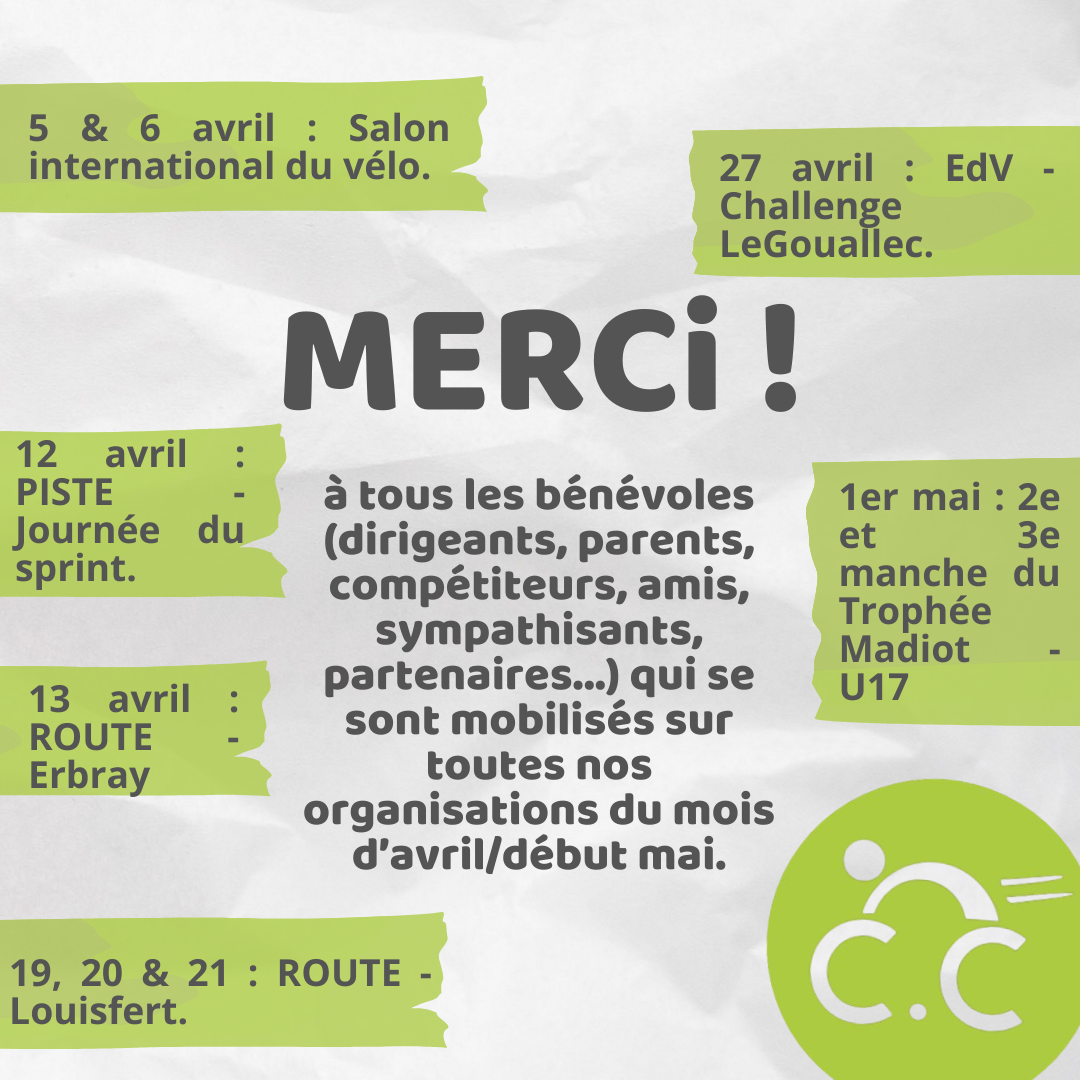 Le mois d'avril 2025 a été un véritable marathon pour les licenciés du CCC. Nos organisations ont été de véritables succès. Alors... MERCI !